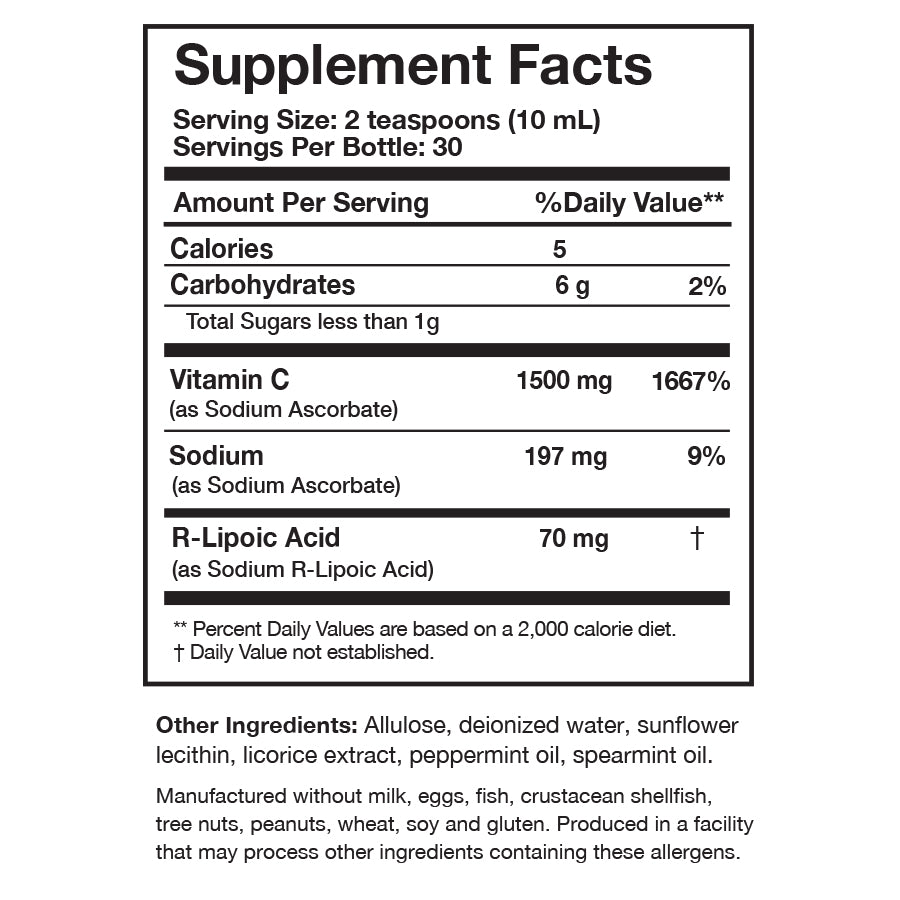 | 1,500 mg Vitamin C | High-dose Vitamin C | • Offers absorption of high-dose Vitamin C which is not available in oral capsules and tablets • Liposomal delivery means no stomach distress |