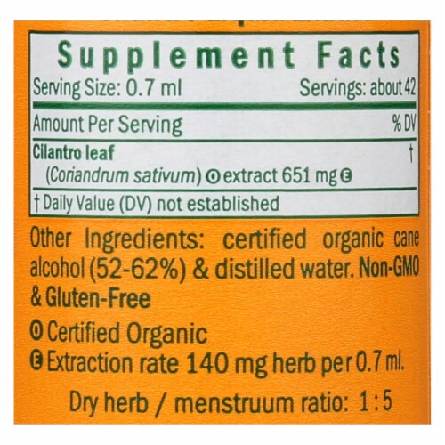 Herb Pharm prepares Cilantro extract from the leaves of Certified Organic Coriandrum sativum plants. To assure optimal extraction of the herb’s bioactive compounds, the leaves are harvested at their peak potency, carefully shade-dried, then thoroughly extracted.