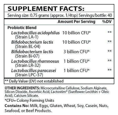 - - Contains both Lactobacillus and Bifidobacteria to colonize the entire G.I. tract.