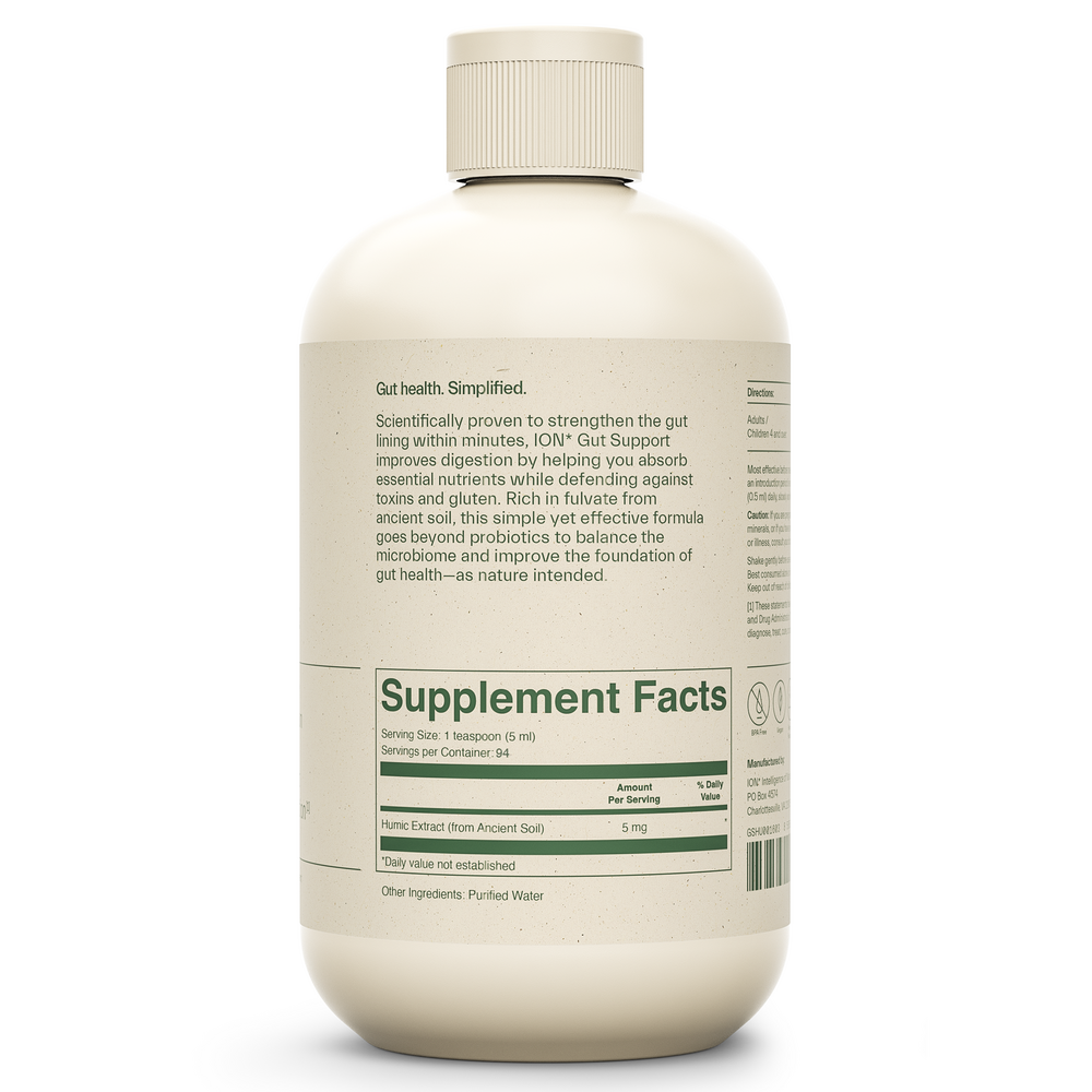 ION* Gut Support is a mineral supplement sourced from 60-million-year-old soil that provides foundational barrier support, naturally balancing the microbiome.* ION* Gut Support fosters: Immune Function*. Digestion*. Mental Clarity*. Metabolism*. Mood*.