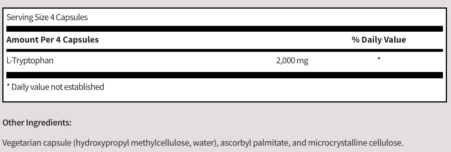 L-Tryptophan acts as the precursor to the neurotransmitter serotonin and supports healthy serotonin synthesis. Supplementation with tryptophan has been shown in numerous clinical trials to be safe, well-tolerated and to support healthy mood and relaxation in addition to optimizing normal sleeping patterns and soothing occasional sleeplessness.*