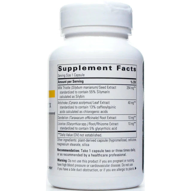 Super Milk Thistle® X combines artichoke extract, dandelion leaf extract, and licorice root extract with a milk thistle fruit extract, standardized to contain 80% silymarin and complexed phytosome for improved absorption.* The ingredients in Super Milk Thistle X provide support for liver function, and bile production and flow.*