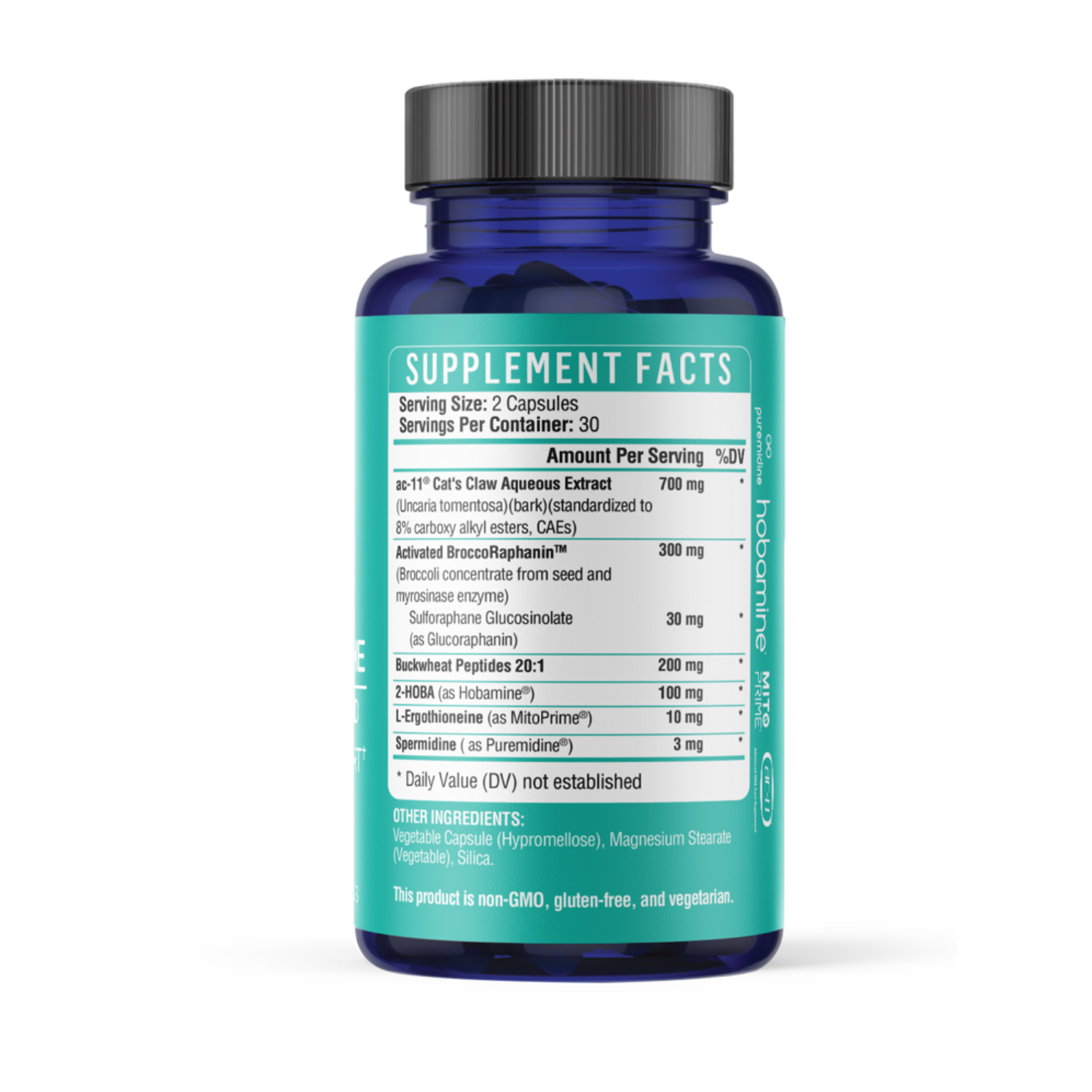Hobamine™, or 2-hydroxybenzylamine (2-HOBA), is a naturally occurring compound in Himalayan Tartary Buckwheat that is at the forefront of new developments to support cellular health, particularly as we age. Hobamine™ (2-HOBA) works by rapidly capturing specific reactive compounds formed by oxidative stress. This capture prevents those compounds from binding to and damaging other cellular components like proteins, lipids, or DNA and impeding normal function of the cell.