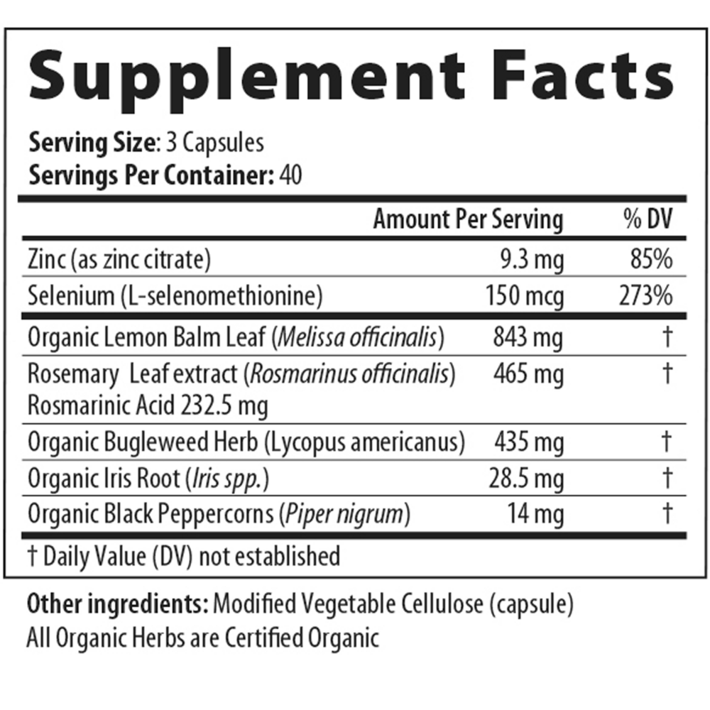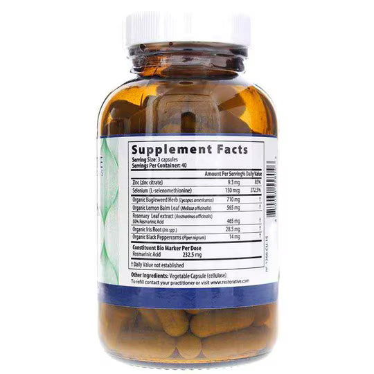 ThyroCalm Px Px is designed to help maintain patient comfort optimizing immune thyroid mediation, supporting thyroid gland function, and the neuro-thyroid relationship. ThyroCalm Px is a specific blend of botanicals high in polyphenols, which support many aspects of thyroid health including optimal conversion of T4 to T3, encouraging healthy thyroid stimulating activity and normal TSH function. The oleoresins found in Blue flag root support detoxification of the thyroid gland along with healthy liver function. Lemon balm rich in volatile compounds, polyphenols, and rosmarinic acid traditionally a calming and relaxing herb support the neurothyroid relationship.